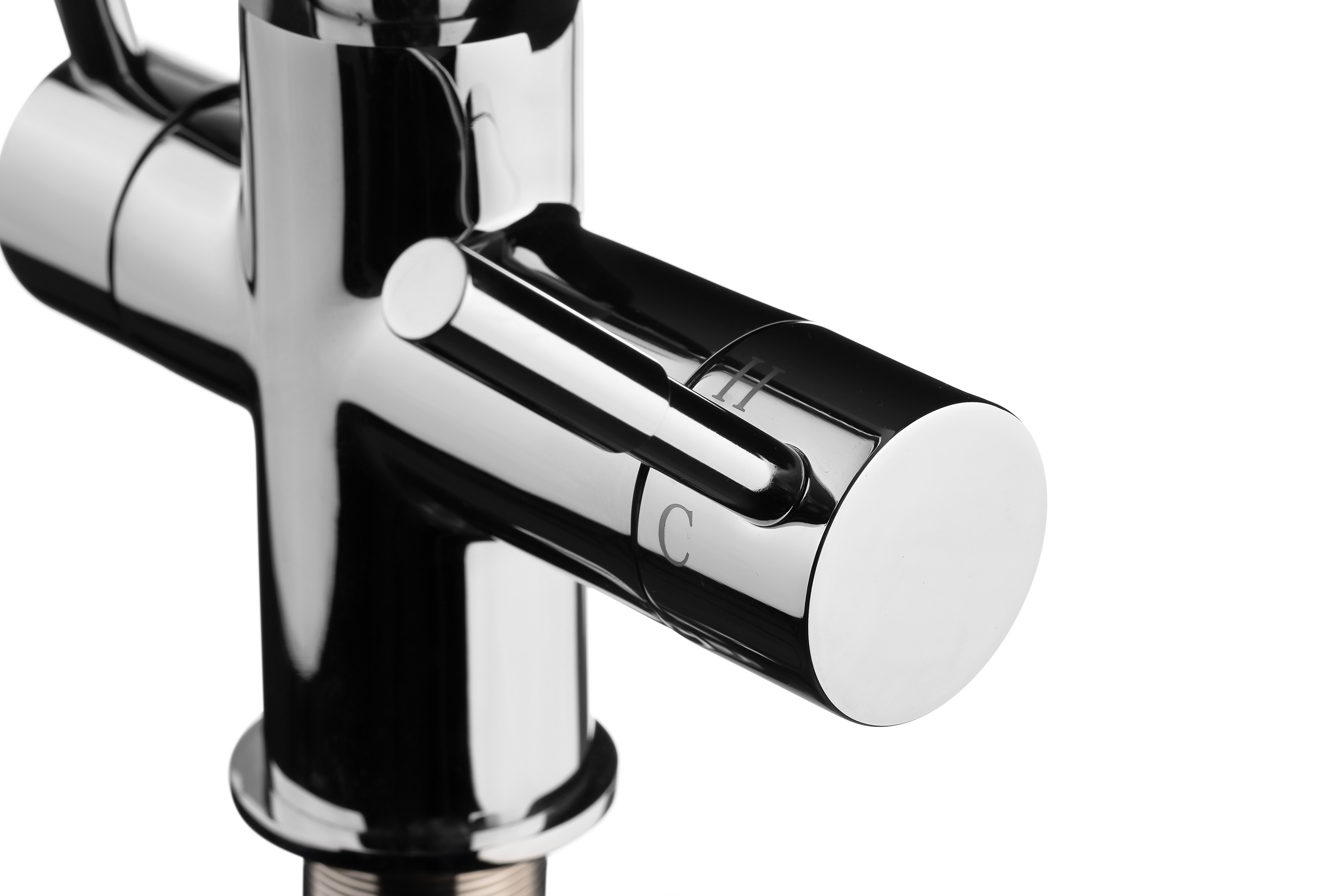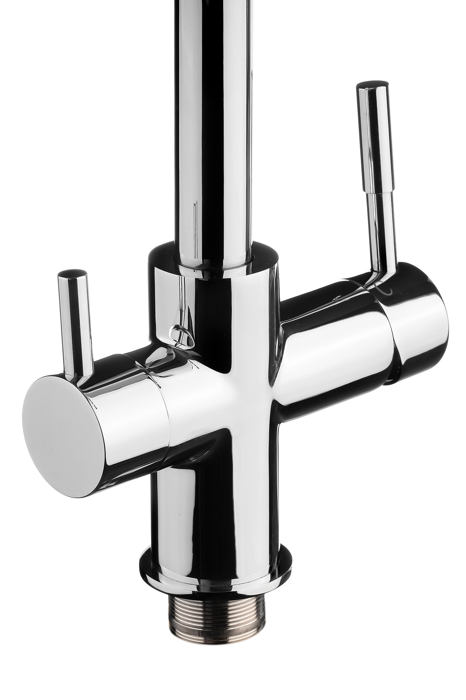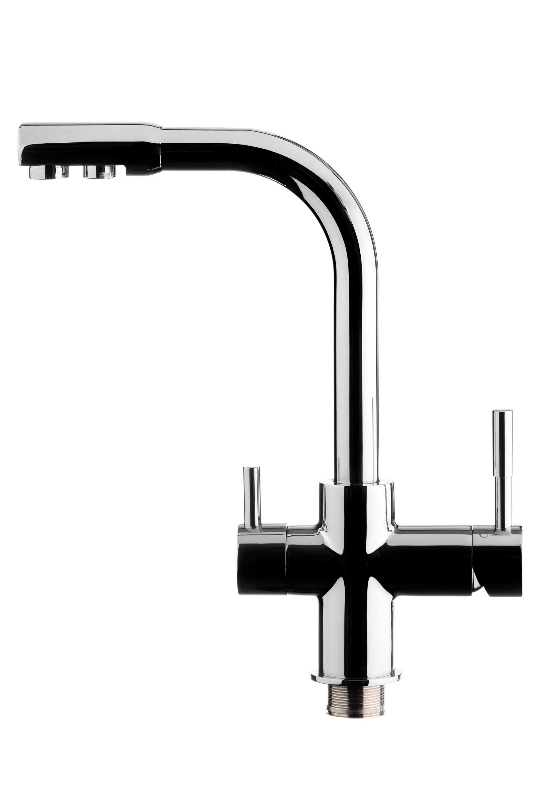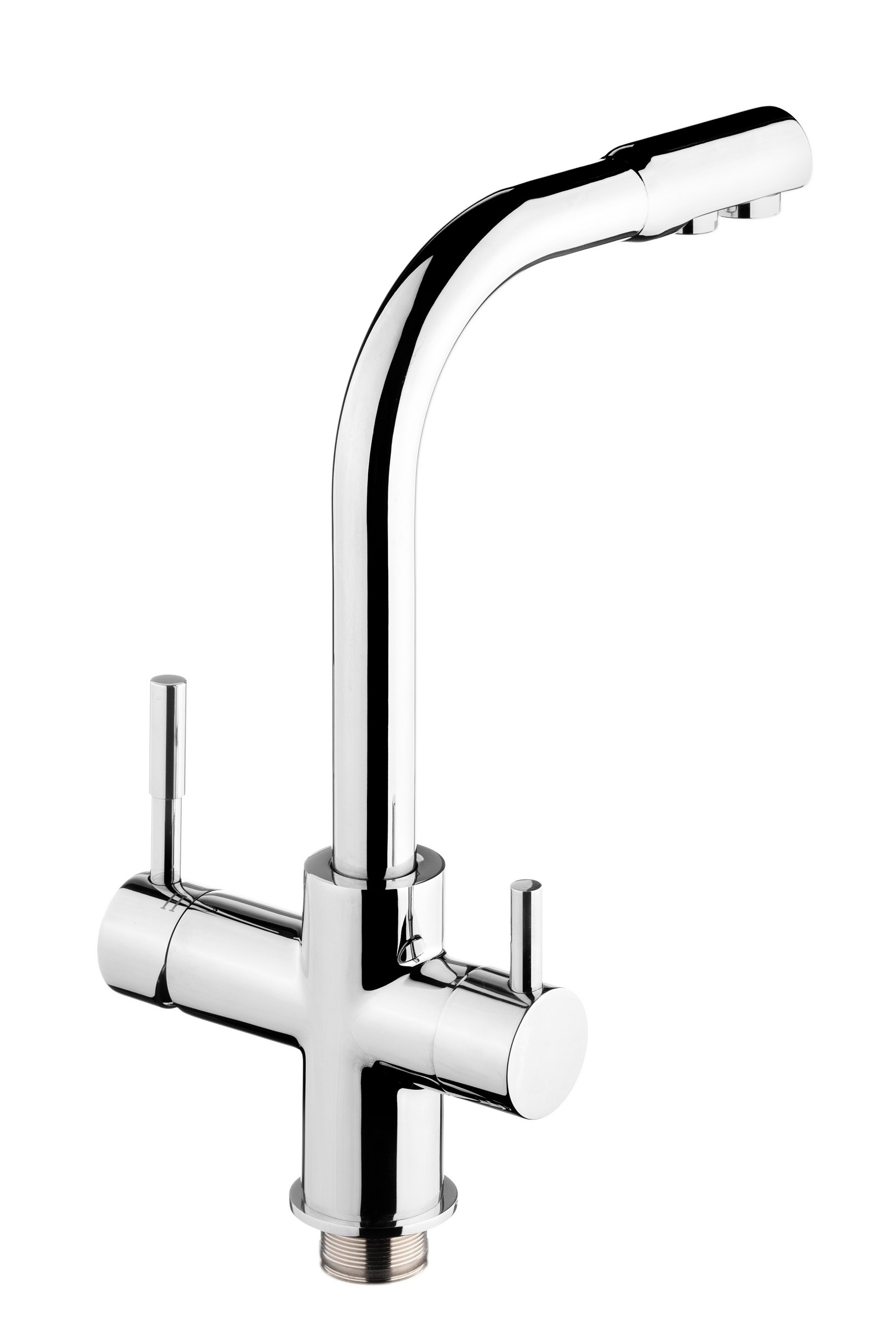 Совмещает функциональность кухонного смесителя и крана для чистой питьевой воды. Предназначен для использования с бытовой системой очистки воды. Общий поток воды и поток питьевой воды подаются через разные каналы одного крана.<br>