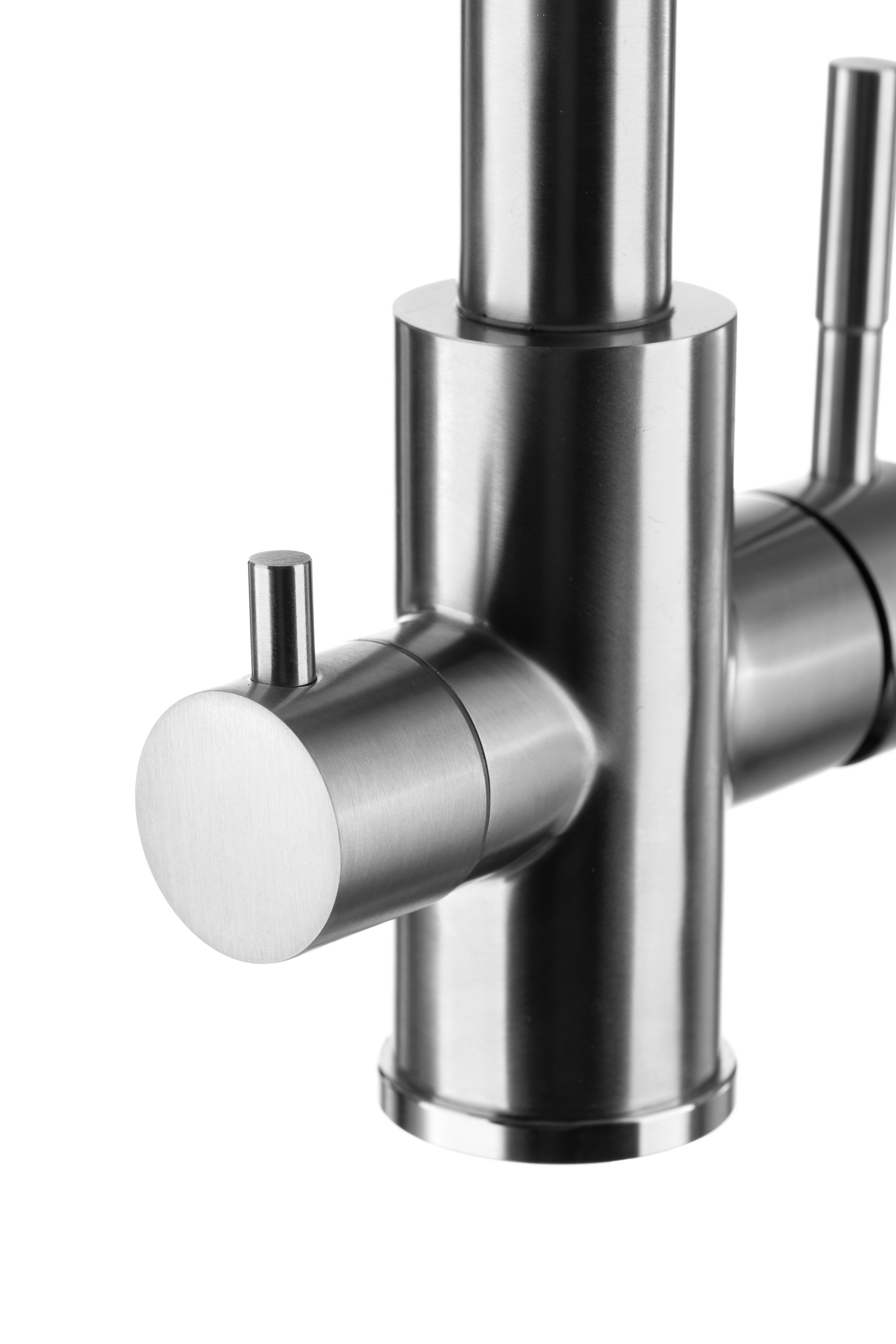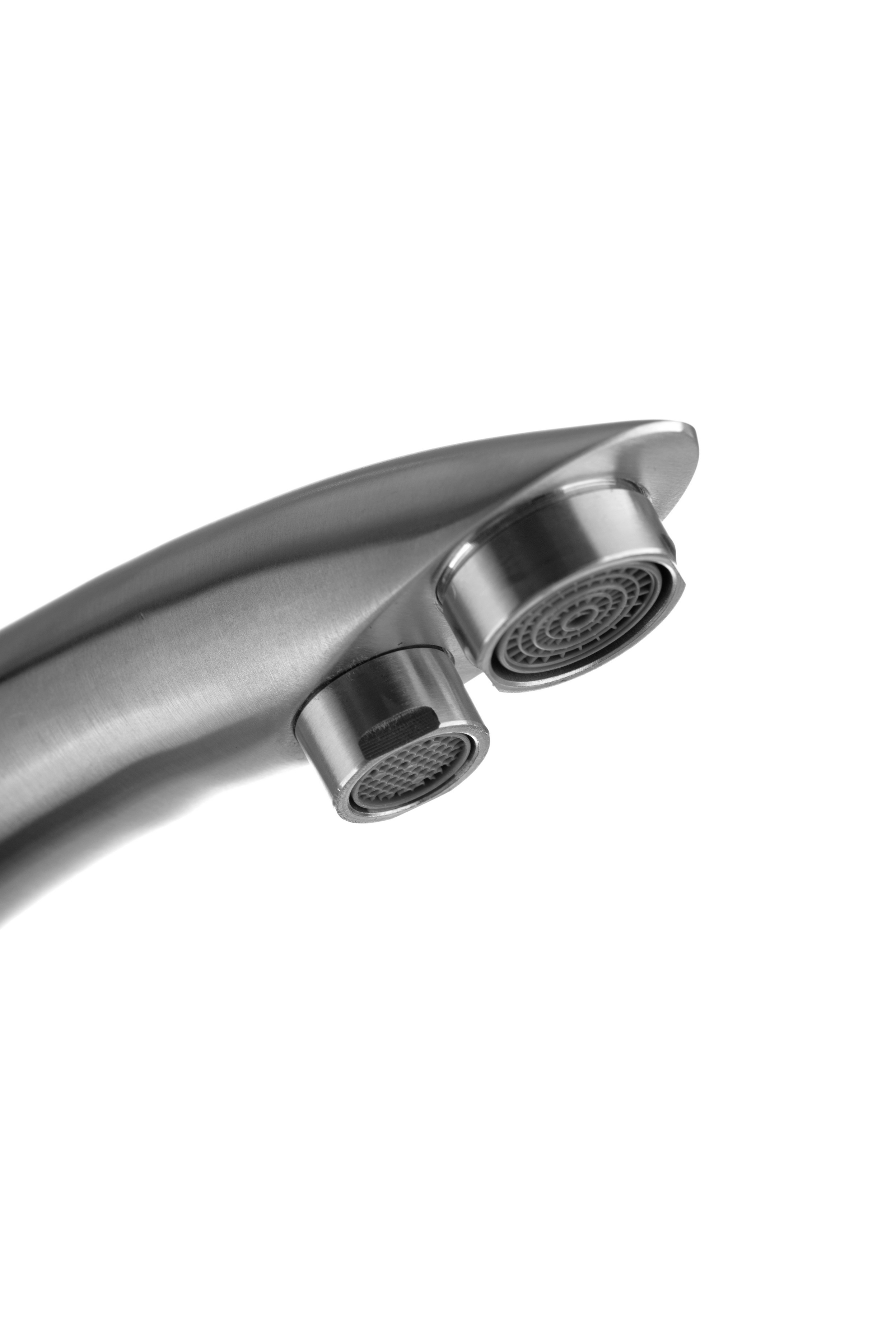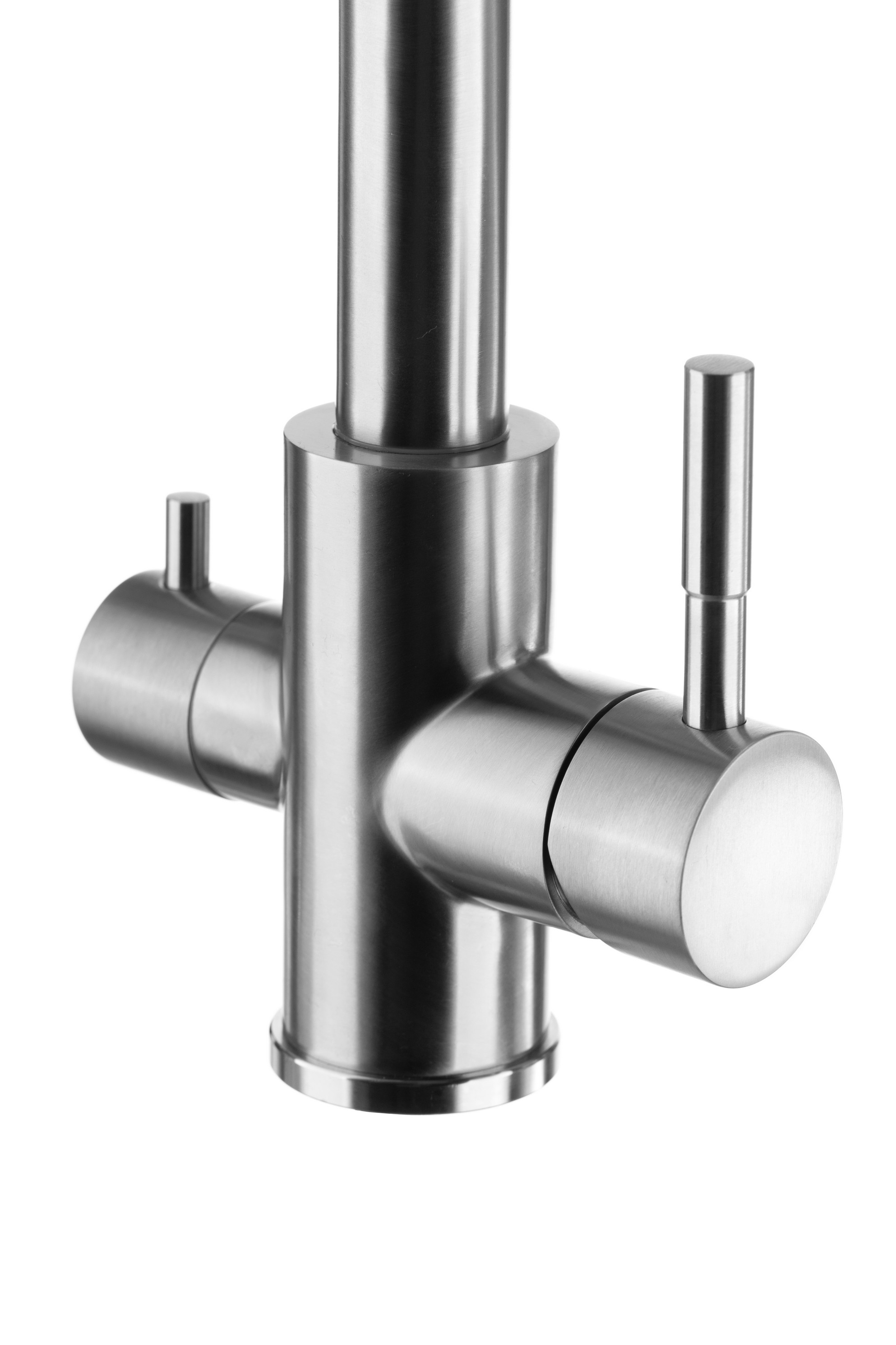 Конструкция смесителя позволяет получать как обычную водопроводную воду (холодную и горячую), так и очищенную воду из фильтра, благодаря чему нет необходимости устанавливать отдельный смеситель для фильтра и сверлить под него отверстие.<br>