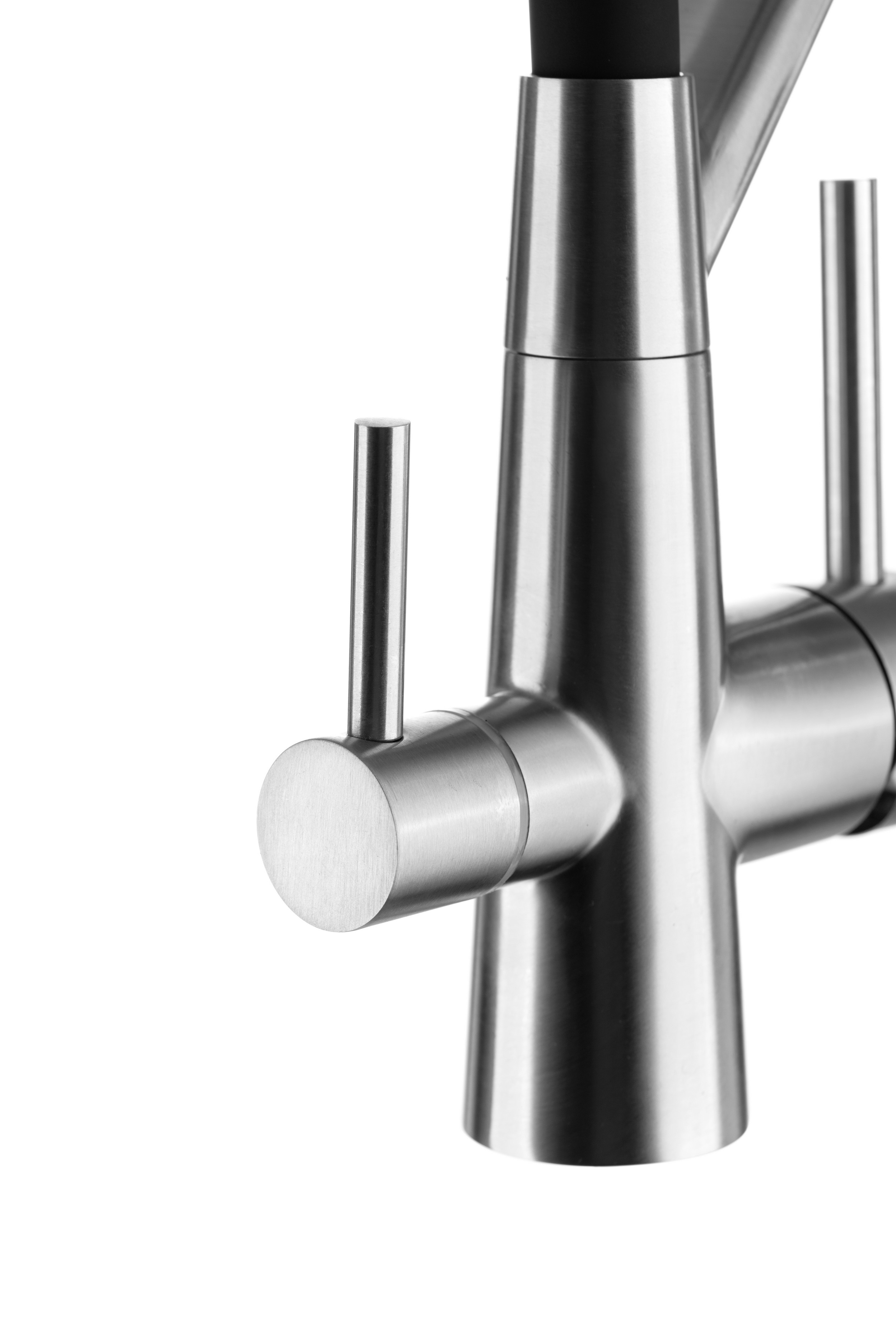 Конструкция смесителя позволяет получать как обычную водопроводную воду (холодную и горячую), так и очищенную воду из фильтра, благодаря чему нет необходимости устанавливать отдельный смеситель для фильтра и сверлить под него отверстие.<br>