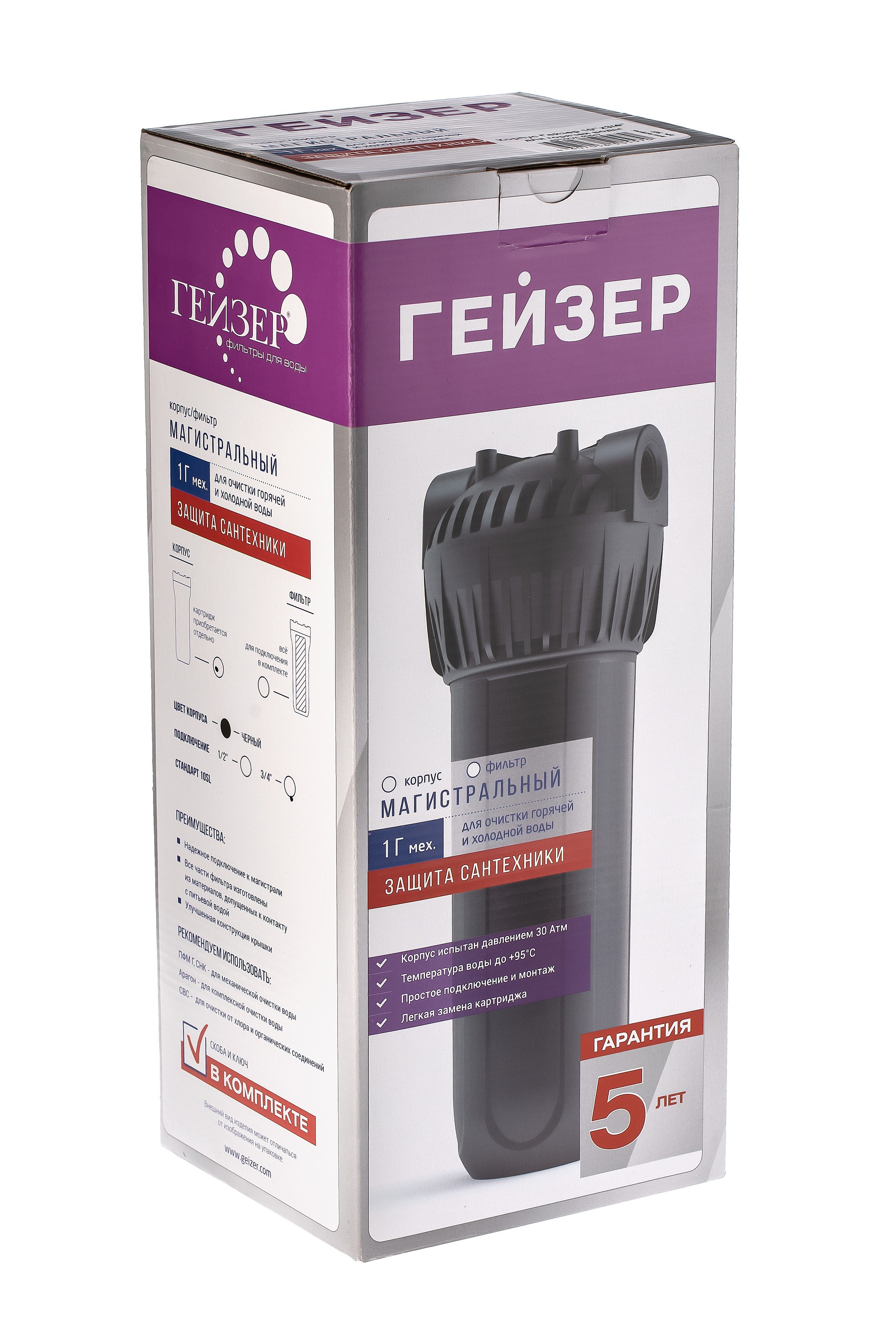 Корпус Гейзер 10SL 3/4" для горячей воды используется с картриджами стандарта Slim Line 10". Максимальное рабочее давление 7 атм. Максимальная рабочая температура 90°С. Присоединительный размер 3/4". Гарантия 5 лет. Производство Россия. Изготовлен из термостойкого полиамида. Корпус рассчитан на работу под давлением и установку на входе в систему горячего или холодного водоснабжения. В производстве корпусов используются материалы пищевого класса.