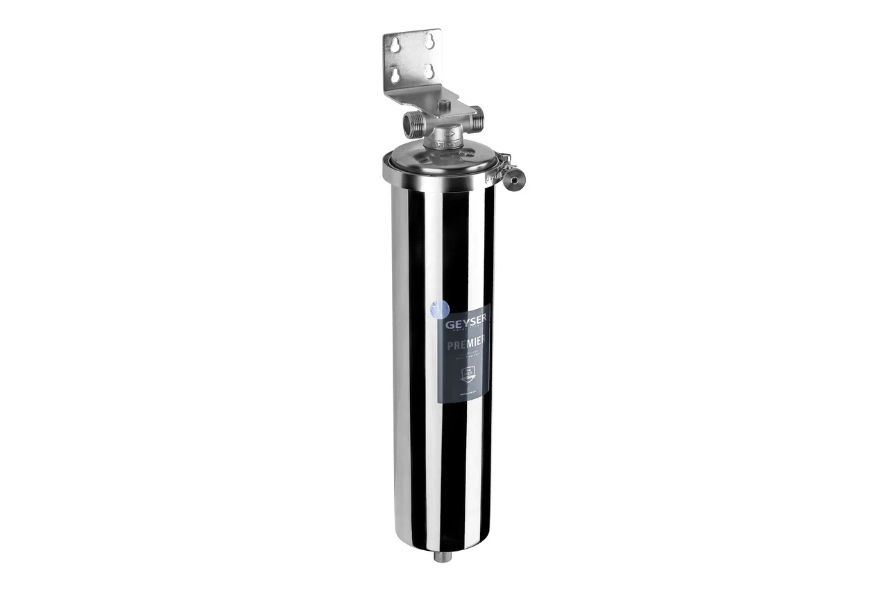 Корпус магистрального фильтра Гейзер Премьер 20BB" 1" из нержавеющей стали специально разработан для устройства фильтрации в системах холодного и горячего водоснабжения, рассчитан на работу под давлением.