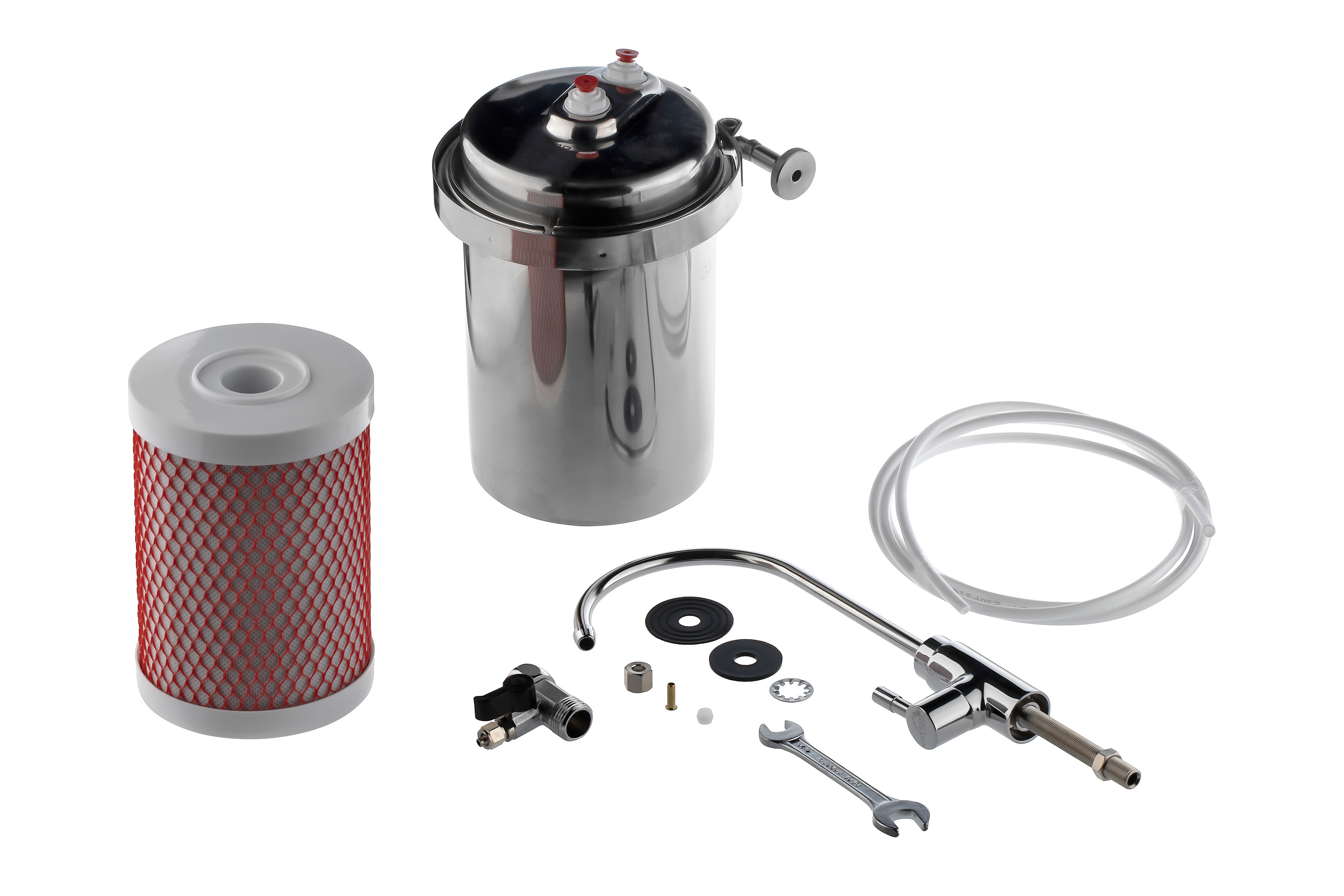 В фильтре используется композиционный картридж Арагон 3 ЭКО, состоящий из предфильтра, материала Арагон и высококачественного кокосового угля. Очищает воду от нерастворимых примесей, железа, органических соединений и хлора. Нормализует жесткость воды. Корпус фильтра выполнен из пищевой нержавеющей стали. Хомутообразное соединение фильтра обеспечивает легкую замену картриджа. Прост в установке и обслуживании.<br>