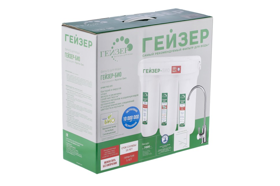- Уникальный материал Арагон БИО.- Воду, очищенную фильтром Гейзер БИО, можно пить без кипячения детям старше 3 лет.