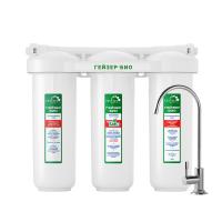 Бытовая система под мойку Гейзер Био 341 для железистой воды. Скорость фильтрации до 3 л/мин. Рабочее давление от 0,5 атм. Температура воды до 40 °С. Ресурс Арагон Ж БИО 7000 л. (с регенерацией до 25 000 л.).