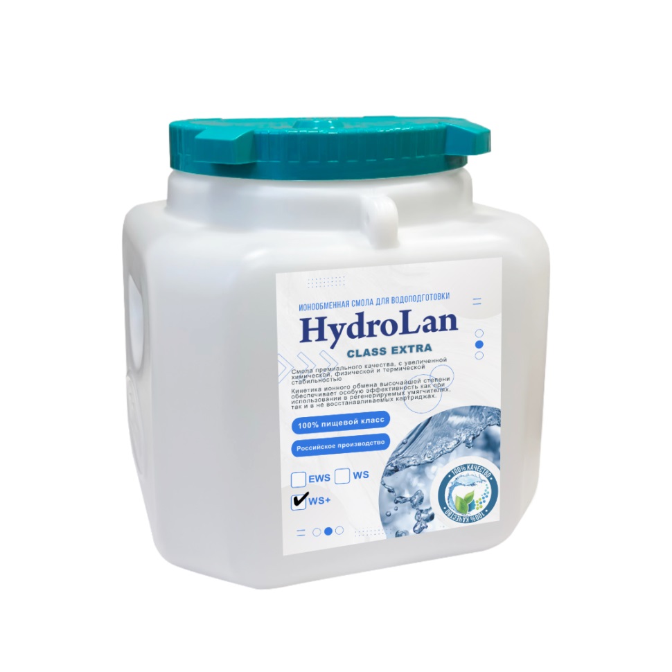 Hydrolan WS+ - это сильнокислотная катионообменная смола (катионит) экстра усиленного состава объемом 20л. с монодисперсным составом. Класс пищевой. Не требует предварительной регенерации. Используется для умягчения воды в частном секторе, объектах теплоэнергетики и промышленности.