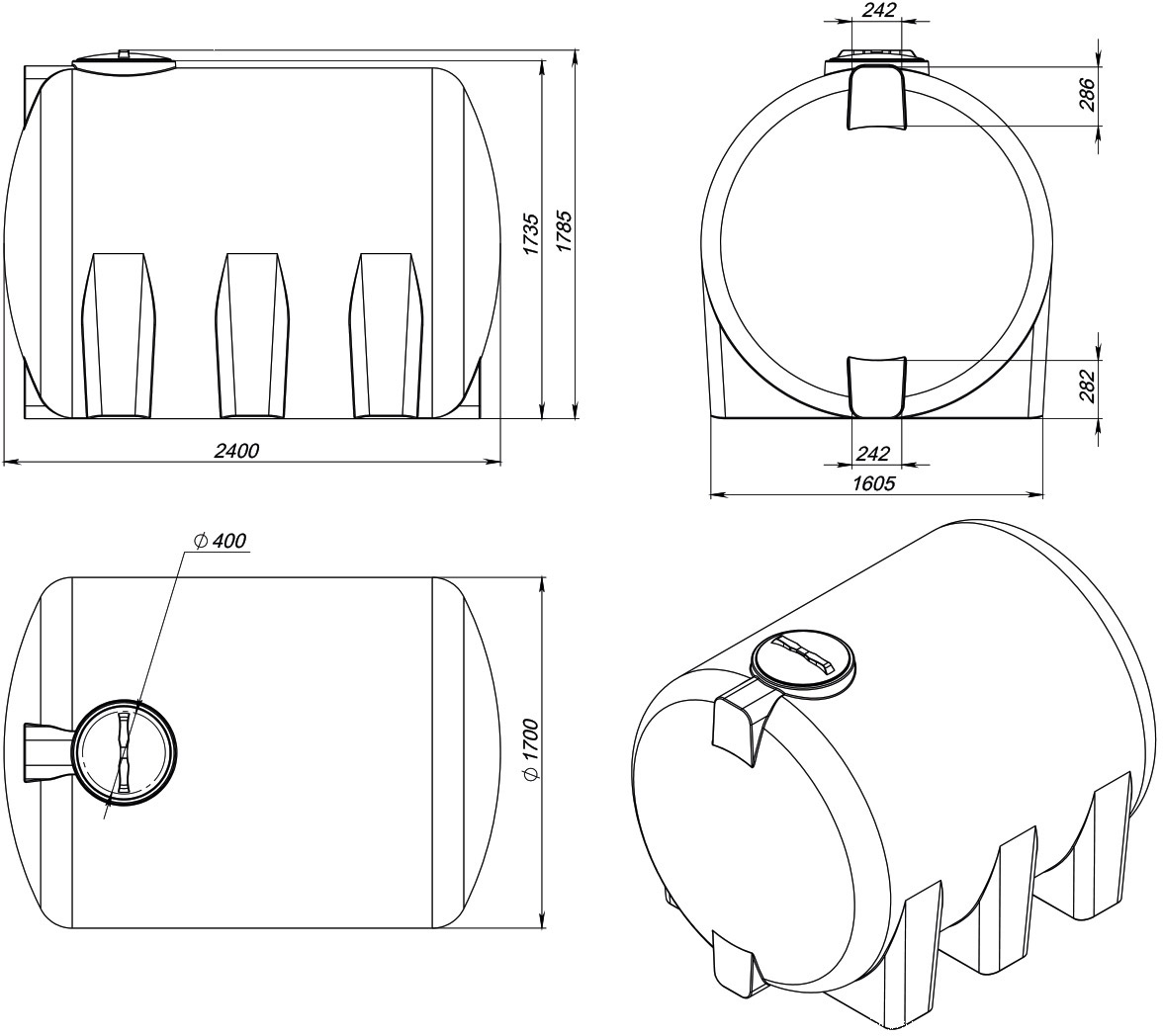- Горизонтальная емкость отличается максимальной устойчивостью благодаря конфигурации с ножками.<br>